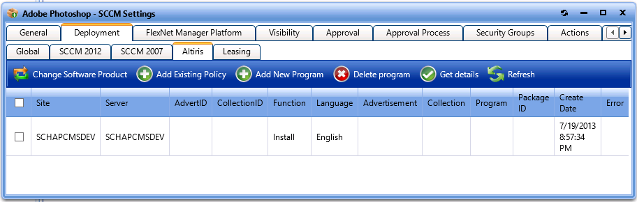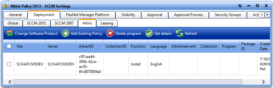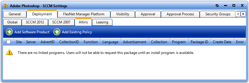 24. Click Add Program . The policy is now listed on the Deployment > Altiris tab.